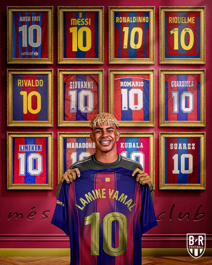 • 雅马尔接管了巴塞罗那的第10号:梅西 罗纳尔多 里瓦尔多 马拉多纳.
