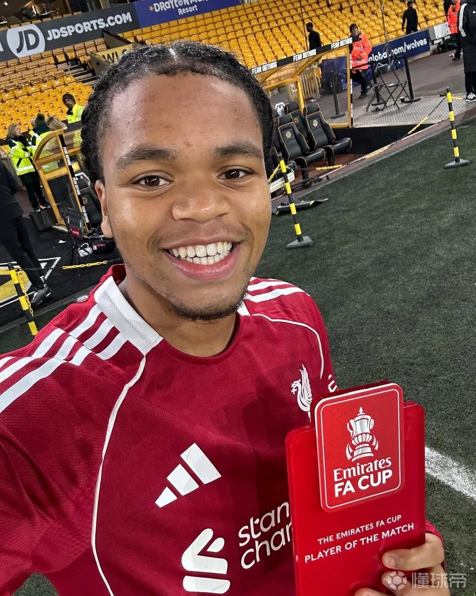 足总杯1/8决赛,利物浦客场3-1击败狼队,此前表现出色的利物浦小将恩古莫哈当选足总杯官方全场最佳球员,并在赛后领取了奖杯。